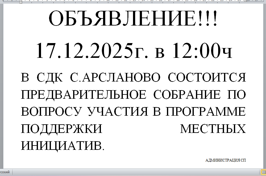 Объявление на 17.12.2025г. на предварительное собрание по ППМИ-2026.